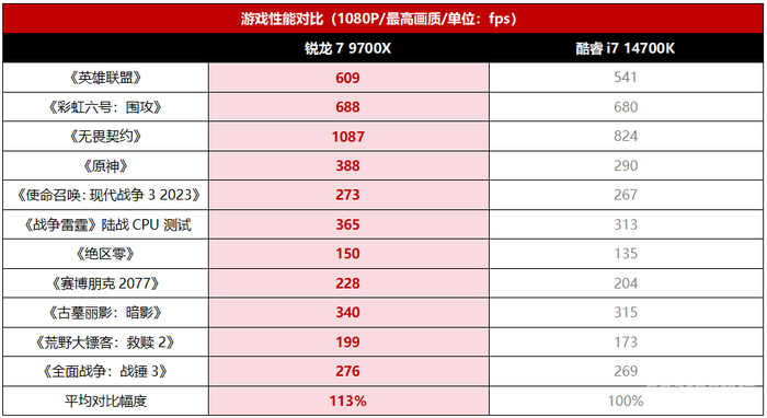 性能级游戏装机:锐龙7 9700X胜过酷睿i7 14700K