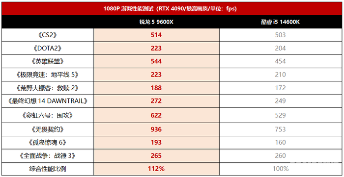 主流游戏装机:锐龙5 9600X胜过酷睿i5 14600K