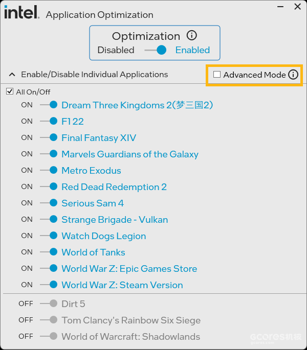 可能有玩家说,那大小核的游戏优化现在总没问题了吧?很遗憾,即便是最新发布的酷睿Ultra 200S系列,也要通过Intel APO软件工作在一些游戏中实现正确的大小核调度,至于哪些游戏需要APO来改善大小核调度效率,大家下载Intel APO打开看就知道了,官方认证总不会有错的。