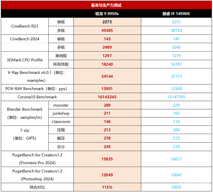 生产力装机:锐龙9 9950X胜过酷睿i9 14900K